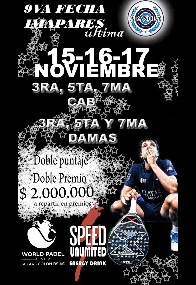 »» Evento: Impares Fecha 9 Doble puntaje, doble premio »» Localidad: Colón »» Fechas: 15/11/2024 al 17/11/2024