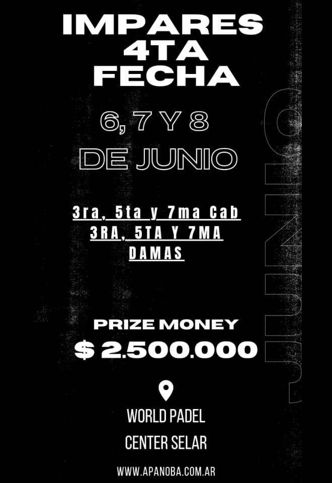 »» Evento: Impares Fecha 4 - junio 2025 »» Localidad: Colón »» Fechas: 06/06/2025 al 08/06/2025