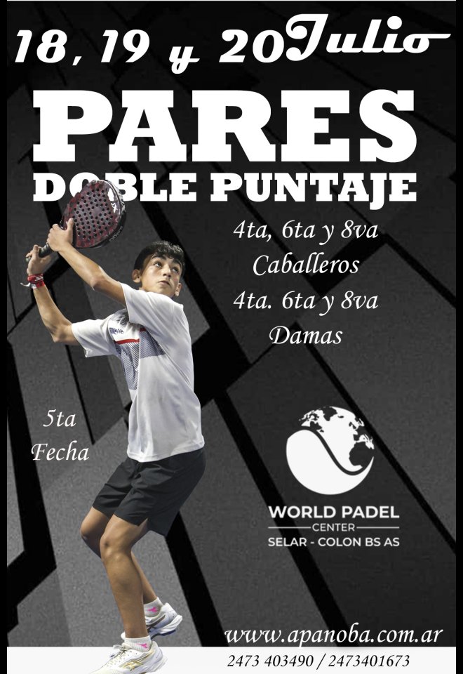 »» Evento: Pares Doble Puntaje - 6ta fecha - julio 2025 »» Localidad: Colón »» Fechas: 18/07/2025 al 20/07/2025